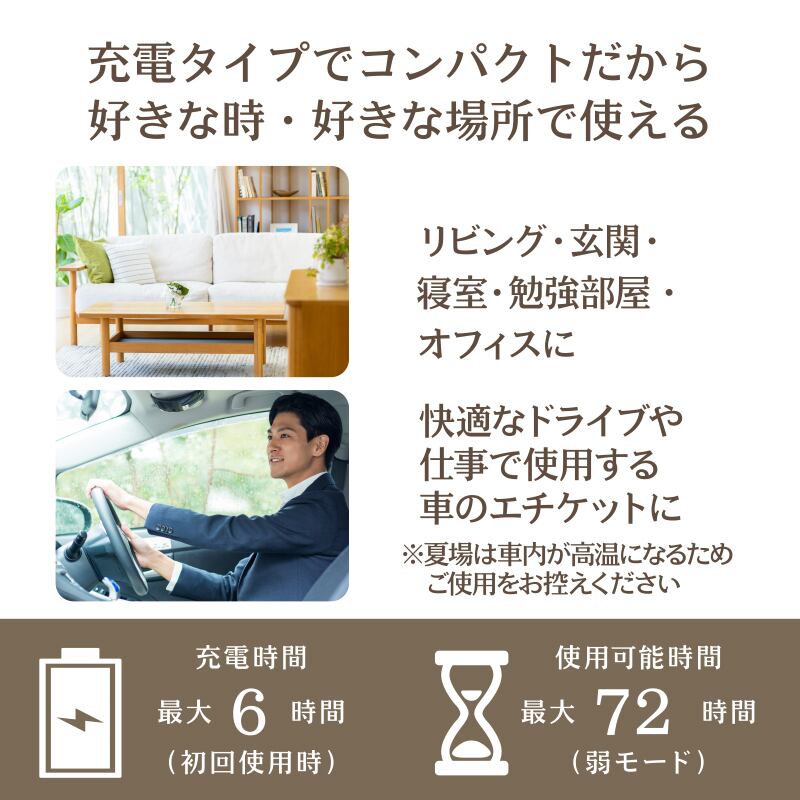 完全充電(6時間)で弱モード72時間、中モード16時間、強モードで8時間の連続運転が可能。