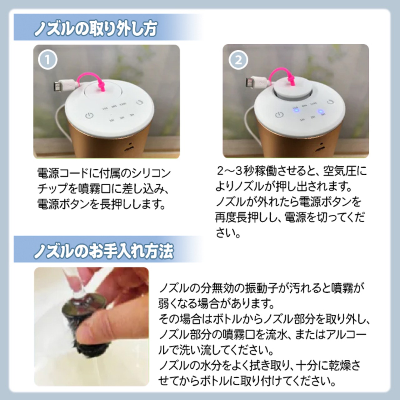 ・本体にノズルをセットする場合は、必ずノズルにボトルを取り付けてからセットしてください。